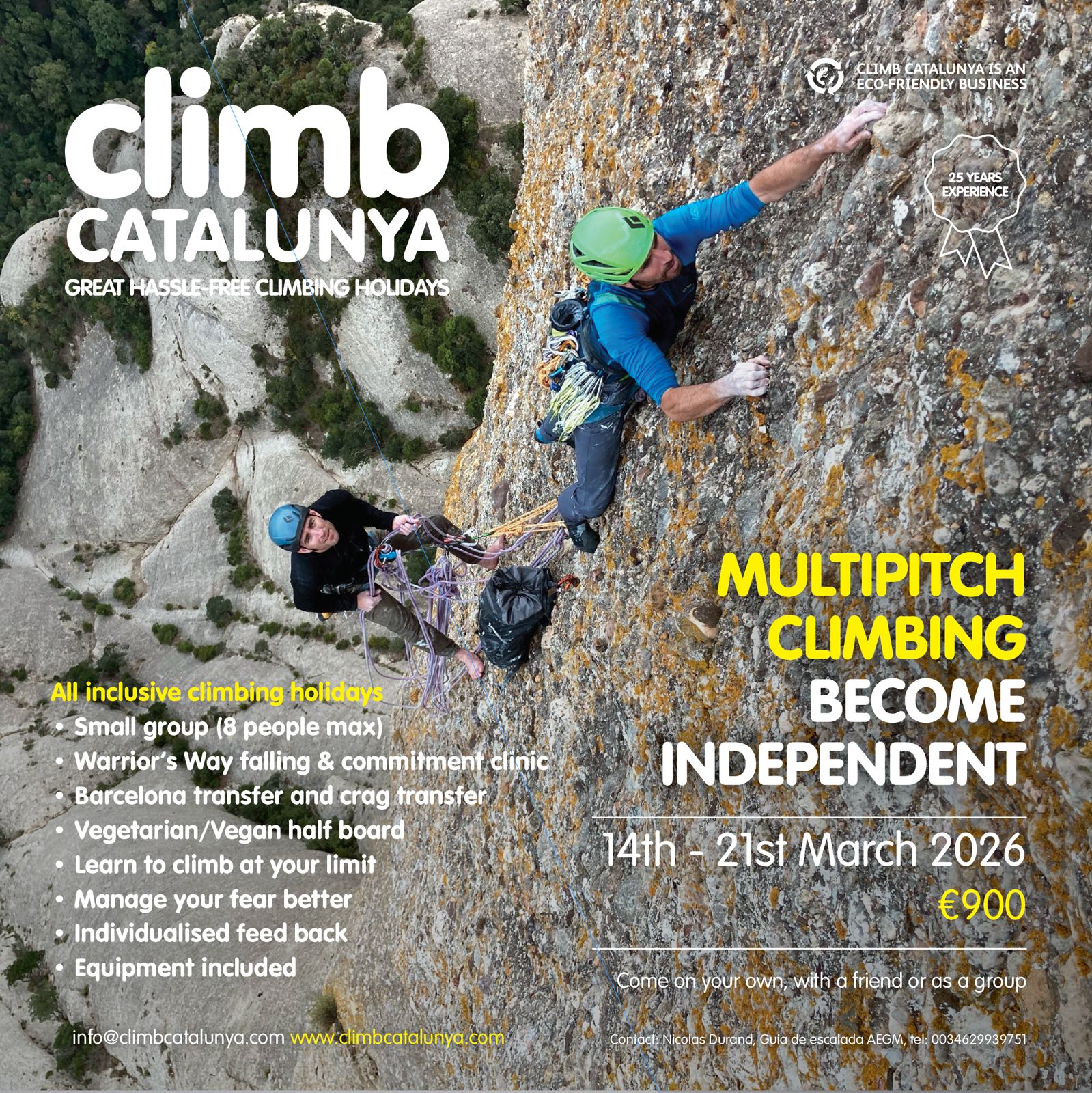 For those concentrating on sports climbing a single 70m/9.5-11mm rope is usually sufficient. For those wishing to multi-pitch it is recommendable to have two 50-60m ropes of 8-9mm. On all the holidays it is possible to spend the whole time climbing on bolts. However, to make the most of the climbing opportunities it is recommended that you bring at least a half-rack for the Classic Gorges trip and a full rack for both Montserrat and the Pyrenees if you want to do some trad climbing.